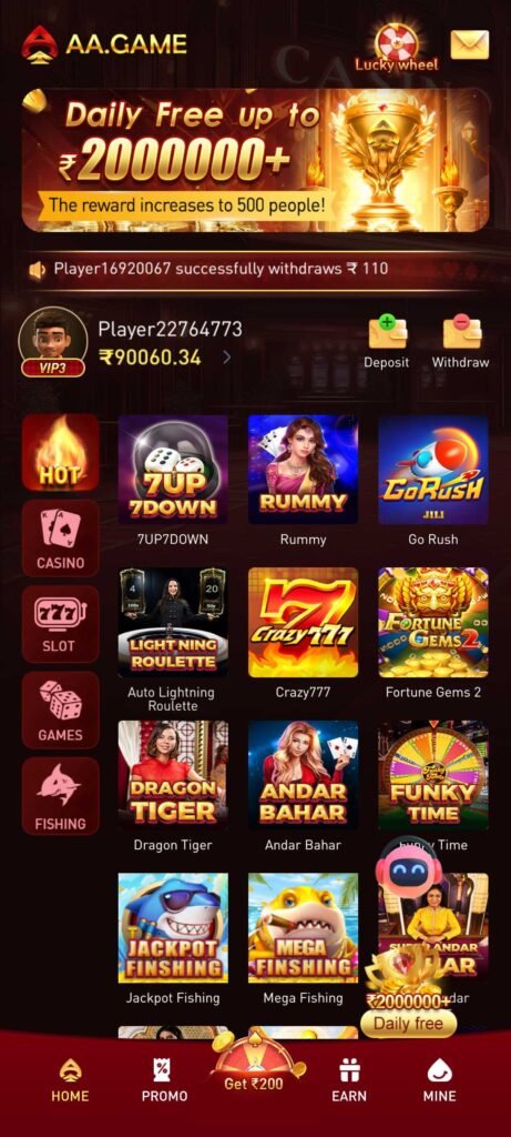 AA Game 777 APK is a gaming app that combines a thrilling selection of games with the added bonus of earning real cash. Whether you enjoy classic slots, action-packed adventures, or mind-challenging puzzles, this app has something for every type of player. Beyond entertainment, it rewards players through unique bonuses and promotions, making the gameplay experience even more exciting.