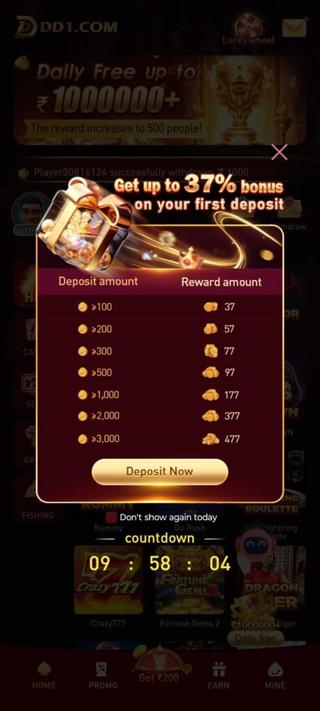 - Exciting Bonuses and Rewards: Apart from the initial 37% cash bonus, DD1.Com frequently offers new and exciting bonuses to keep players engaged.