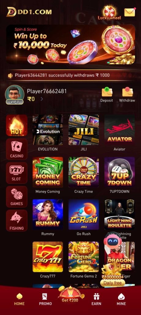 The DD1.Com APK is a specialized gaming app that offers a wide array of games, from classic casino games to new, innovative titles. With a user-friendly design, this APK is crafted to provide a seamless experience for gamers of all levels. Notably, it sets itself apart with a substantial cash bonus offer, making it a top choice among gamers seeking both fun and rewards.