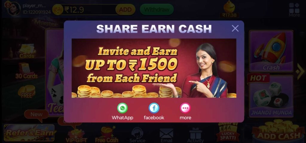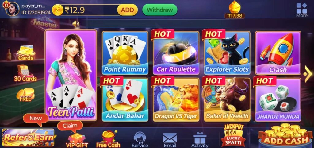 Teen Patti, often referred to as Indian Poker, is a traditional card game loved by millions. Teen Patti Master takes this experience online with enhanced visuals, multiplayer capabilities, and real-money stakes. It allows players to connect, compete, and win cash rewards from anywhere.